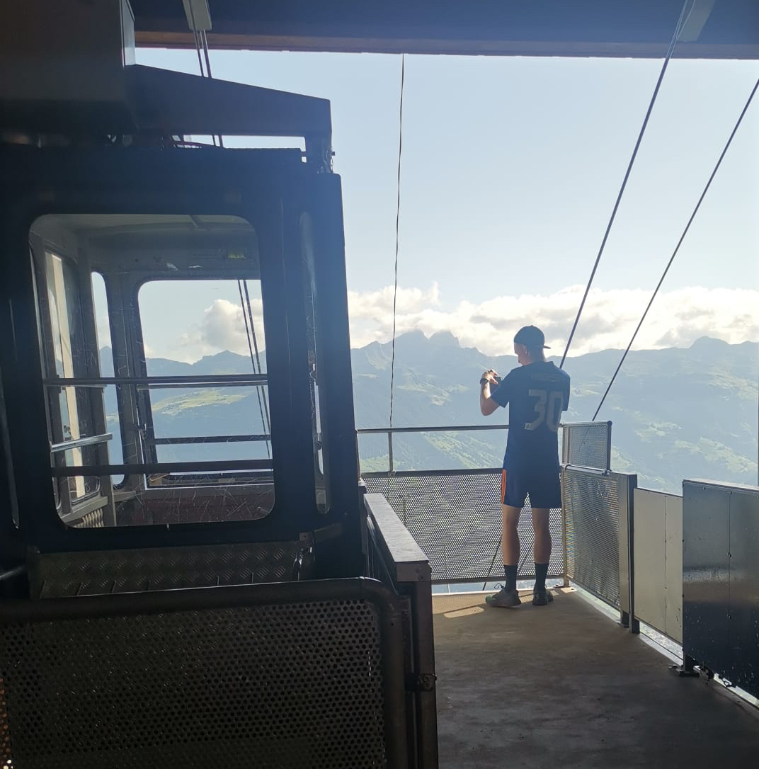 Um 08.15 Uhr setzten wir uns dann in Bewegung und nahmen als erstes Ziel der heutigen Etappe Attinghausen ins Visier. Hierfür mussten wir etwas mehr als 3 Kilometer auf flachen Wegen zurücklegen und gelangten dann nach einem kleinen Anstieg und ungefähr 30 Minuten zur Brüstibahn. Wir waren uns nicht ganz sicher, ob wir da richtig waren, weil das Gondeli war kuschelig klein. Fourchi nahm dann kurzerhand den Hörer in der kleinen Hütte in die Hand und tatsächlich meldete sich jemand von der anderen Seite. Fourchi meldete zwei Personen an und wir konnten direkt in die Gondel einsteigen und dann wurden wir auch schon hochgezogen.