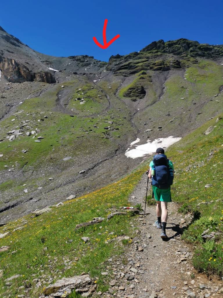 Davon liessen wir uns aber nicht beirren und wir stiegen in einem regelmässigen Tempo immer weiter hoch, bis wir dann tatsächlich das erste Mal Platz machen mussten, um uns überholen zu lassen. Bis zu diesem Zeitpunkt war das noch nie der Fall, sondern immer nur auf die andere Seite (wir überholten andere). Aber es gibt keinen Grund zur Sorge, das war nämlich ein Trailrunner mit seinem sexy kleinen Rucksäckli. Wir liessen ihn also passieren und bahnten uns weiter unseren Weg hinauf zur Sefinenfurgge.