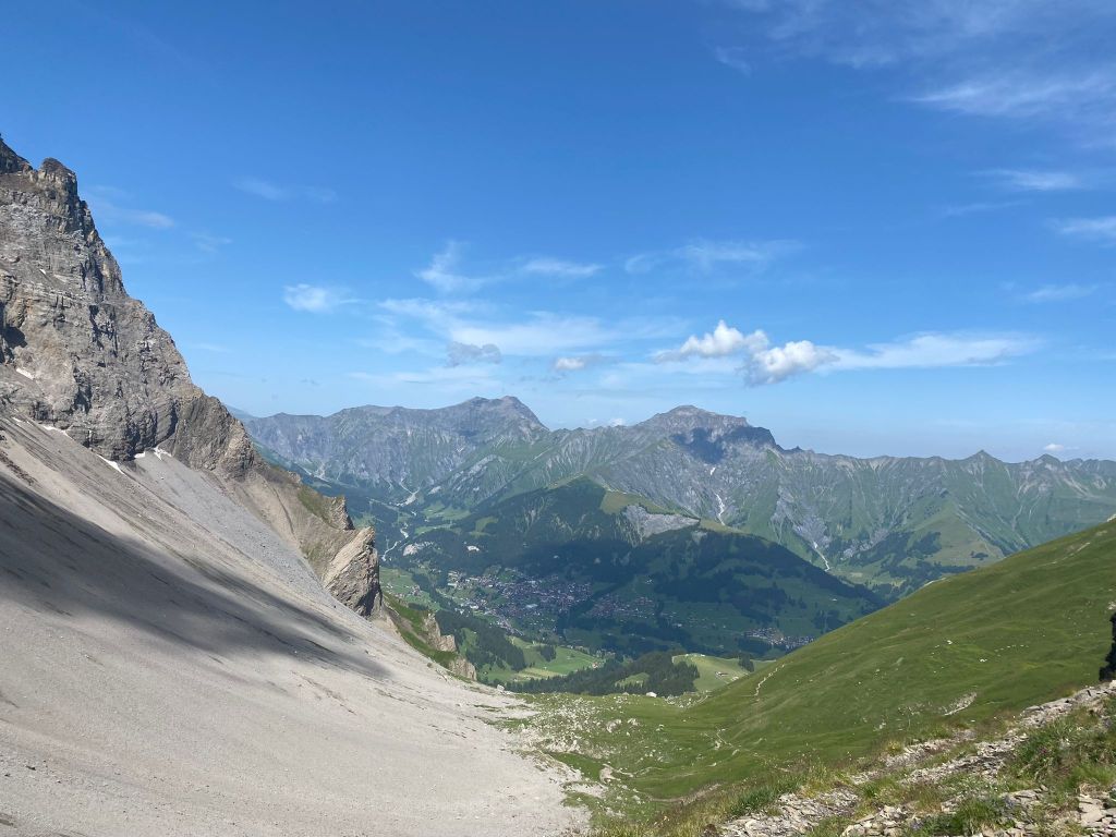 Eine halbe Stunde später entschieden wir uns dann auch noch die zweite Etappe am heutigen Tag in Angriff zu nehmen. Und so liefen wir zackigen Schrittes durch das wunderbare Adelboden (es war wirklich sehr ruhig da) und standen dann auch schon bald am Beginn des Aufstiegs zum Hahnenmoospass. Und dieser Aufstieg war wirklich angenehm, das ist die ganze Wahrheit. Konstant ging es immer ein wenig bergauf und so konnten wir ein wirklich hohes Tempo anschlagen und gewannen total unbewusst ziemlich schnell an Höhe. Auch die nebenan verlaufende Gondelbahn störte überhaupt nicht, wir waren ja fast schneller (okay, ist ein bisschen übertrieben).