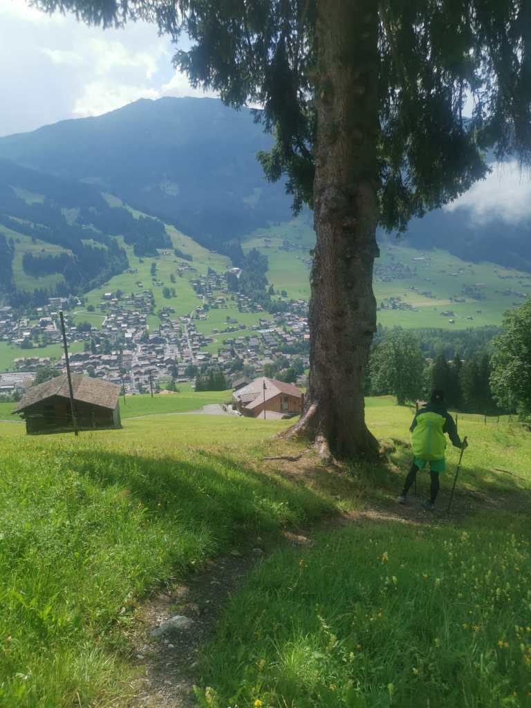 Danach wurden die Wanderwege wieder enger, steiler und rutschiger und deshalb mussten wir unser Tempo entsprechend drosseln. Zu dieser Zeit verstand dann auch niemand mehr wirklich das Wetter. Regen, Sonnenschein, Nebel… und das in ständigem Wechsel. Aber das spielte uns keine Rolle, denn unser heutiges Ziel Lenk kam sichtlich näher.