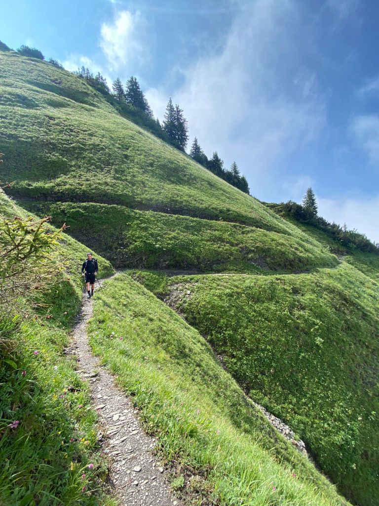 Es ging nach dem gleichen Schema weiter: Herrliche Wanderwege, eher schmal und eng an den Felsen entlang immer weiter in Richtung Brienzer Rothorn. Übrigens hatten wir ja vor, eine Route von Haude zu befolgen. Es stellte sich aber schnell heraus, dass wir da anders unterwegs waren, weil wir uns vollkommen auf den Wegweiser verliessen. Und so kam es auch, dass wir gar nicht über Turren aufgestiegen sind, sondern über Chäseren. Für uns war das ideal, weil wir konnten die Wanderwege geniessen und der Beschilderung folgen, ohne uns gross Gedanken machen zu müssen.