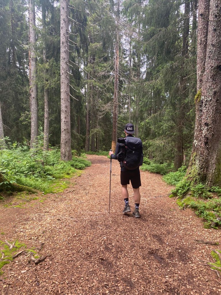 Der Rucksack war für uns während der ganzen Tour nie ein Thema. Wir hatten alle unnötigen Sachen zuhause gelassen und konnten jederzeit gut mit dem Gewicht auf dem Rücken umgehen. Dies sicherlich auch, weil wir von Anfang an mit Wanderstöcken unterwegs waren und diese auch fast ständig im Einsatz hatten.