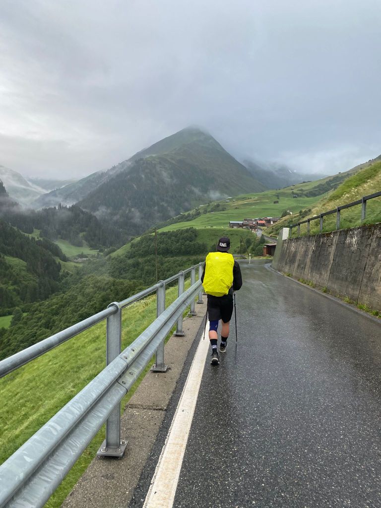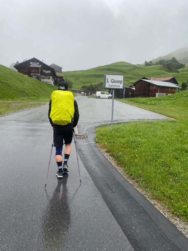 Kurz nach 07.30 Uhr konnten wir dann die Unterkunft Casa Leon verlassen und verliessen Vrin bei regnerischem Wetter auf Asphaltstrassen. Fourchi war heute noch für das Startvideo zuständig.