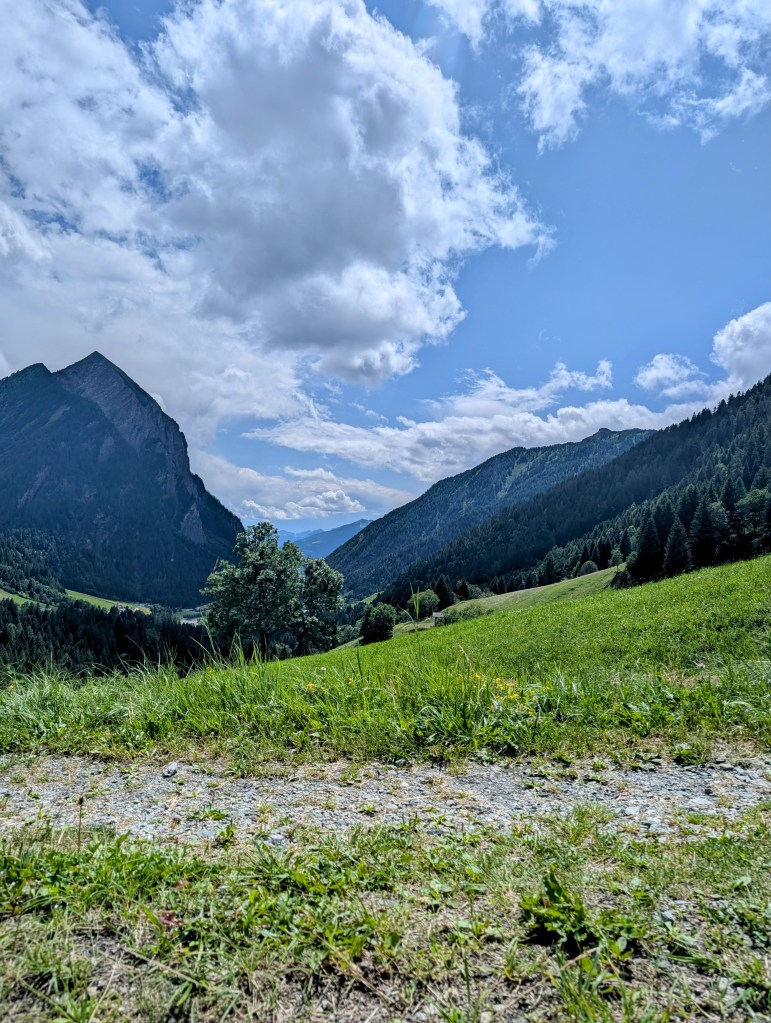 Nach den abwechslungsreichen Wegen über Bergpfade und Wiesen kam auch immer wieder die eine oder andere Passage auf Asphalt dazu. Als wir dann noch weiter abstiegen, ging es fast ausschliesslich nur noch mit Schotterstrassen weiter.