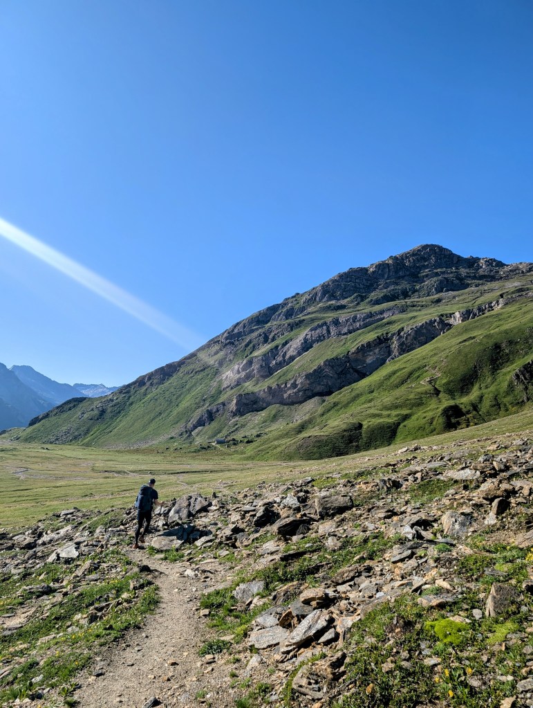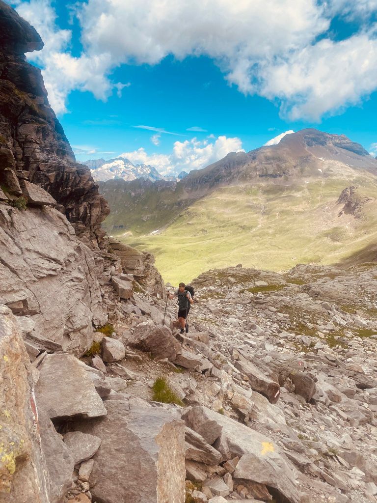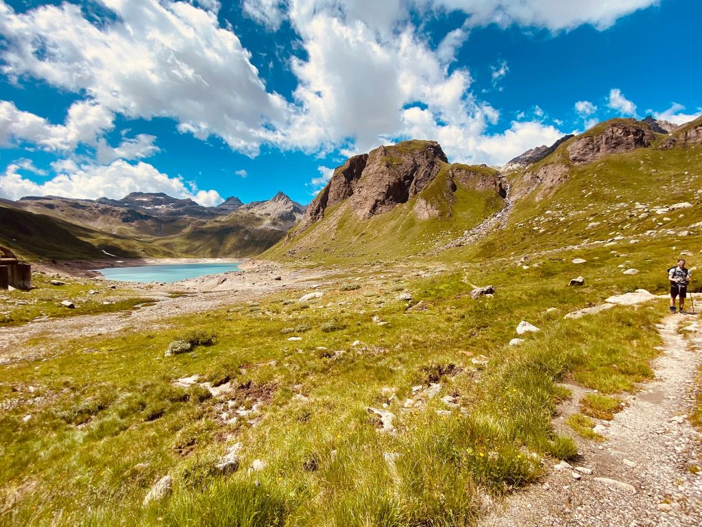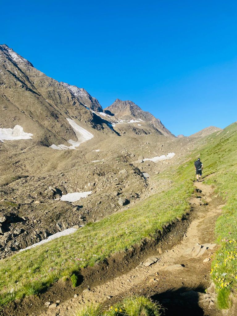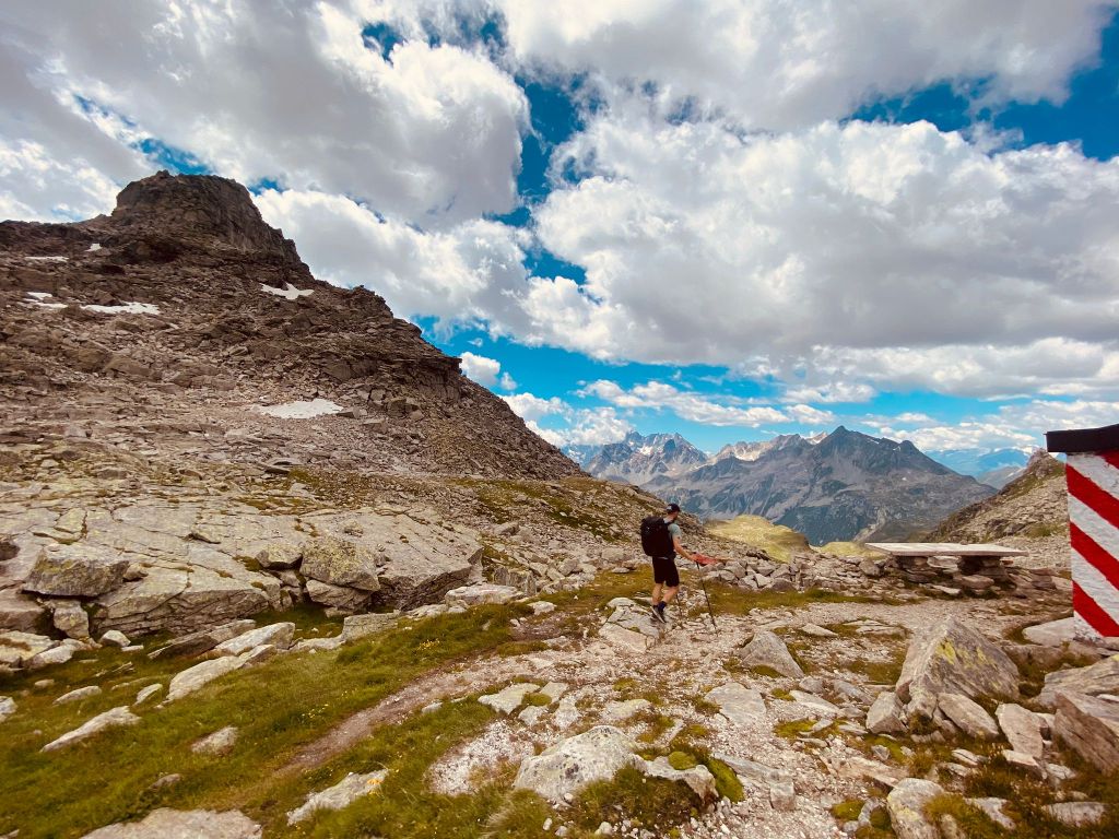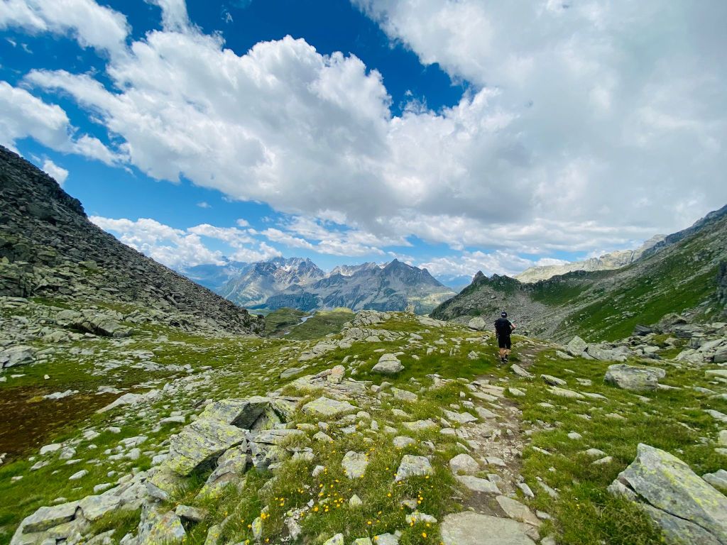 Die ersten Meter legten wir noch relativ flach am Lago Vannino entlang zurück. Auch dieser Start war herrlich im Hinblick auf die Landschaft und die Aussicht. Unsere Körper waren aber zu diesem Zeitpunkt schon nicht mehr ganz so frisch – immerhin hatten sie weitere 17 Kilometer und zahlreiche Höhenmeter verdauen müssen.