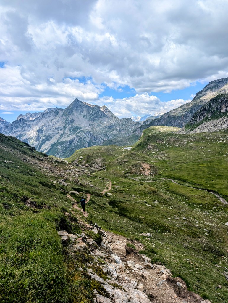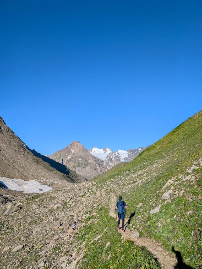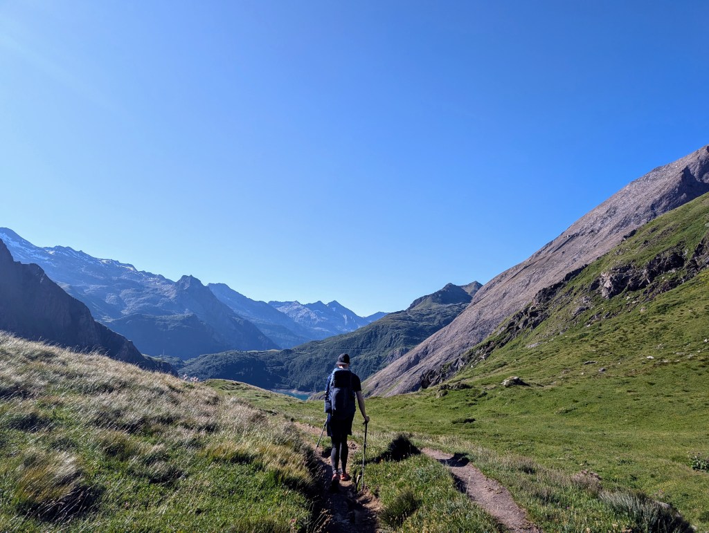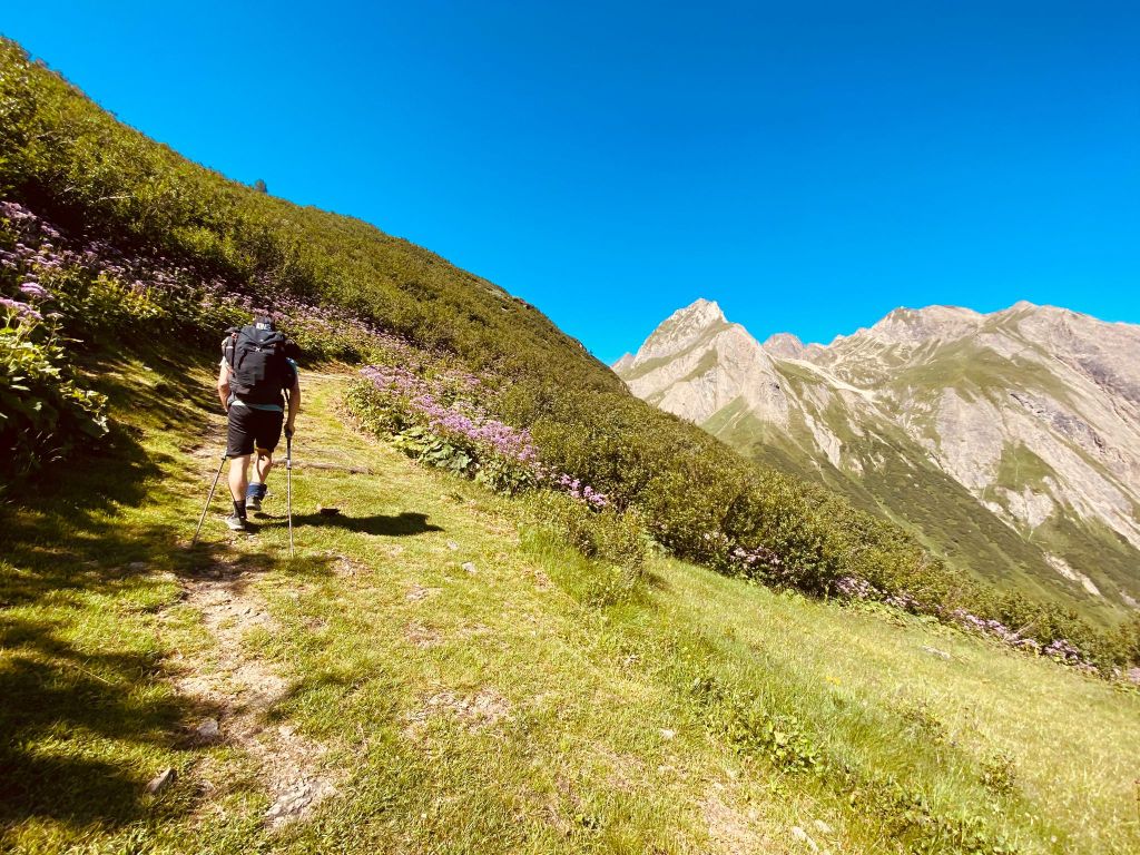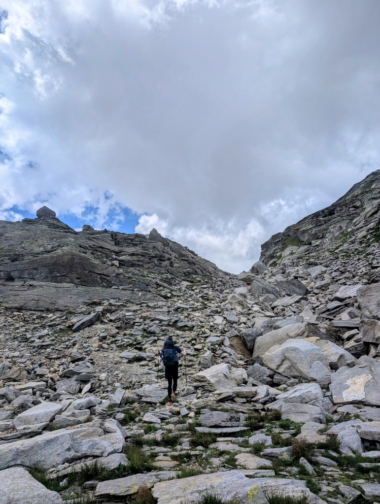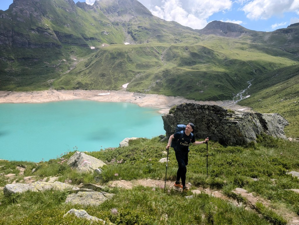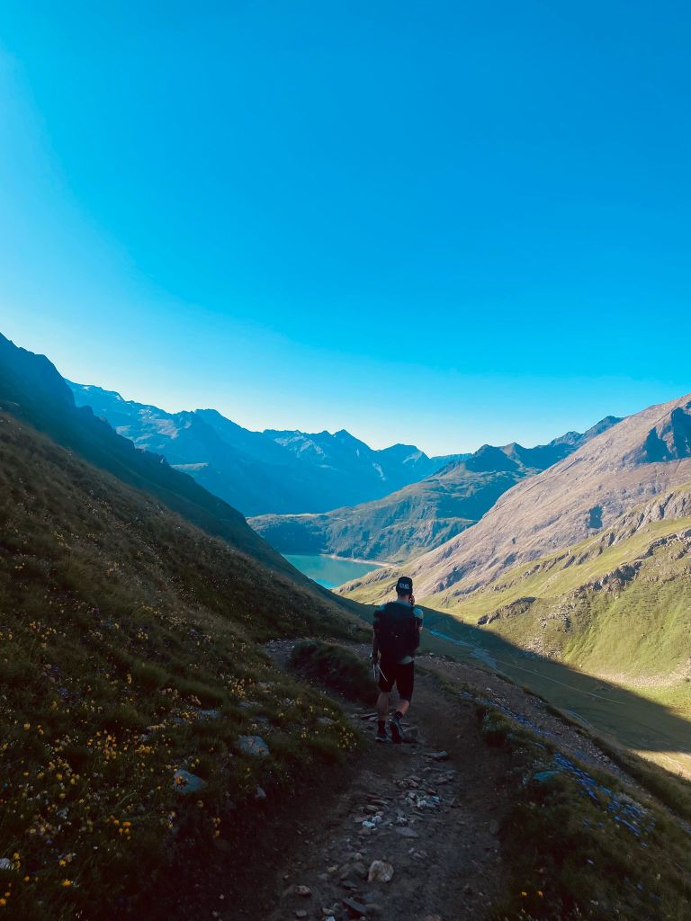 Die ersten Meter legten wir noch relativ flach am Lago Vannino entlang zurück. Auch dieser Start war herrlich im Hinblick auf die Landschaft und die Aussicht. Unsere Körper waren aber zu diesem Zeitpunkt schon nicht mehr ganz so frisch – immerhin hatten sie weitere 17 Kilometer und zahlreiche Höhenmeter verdauen müssen.