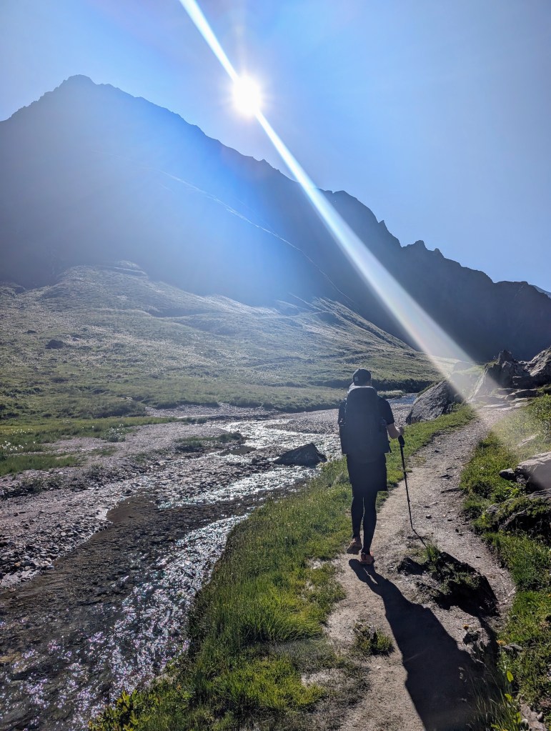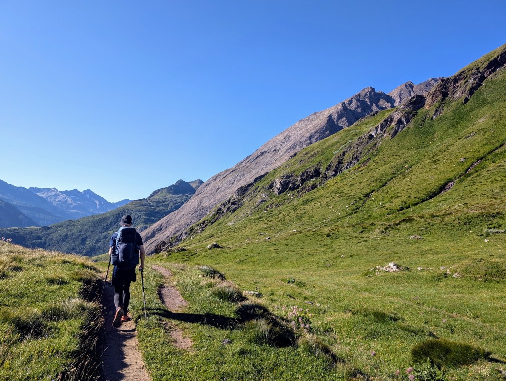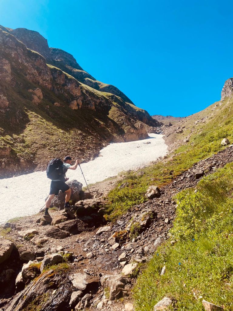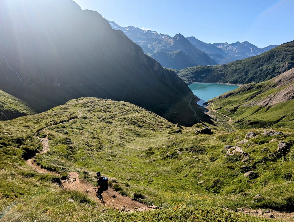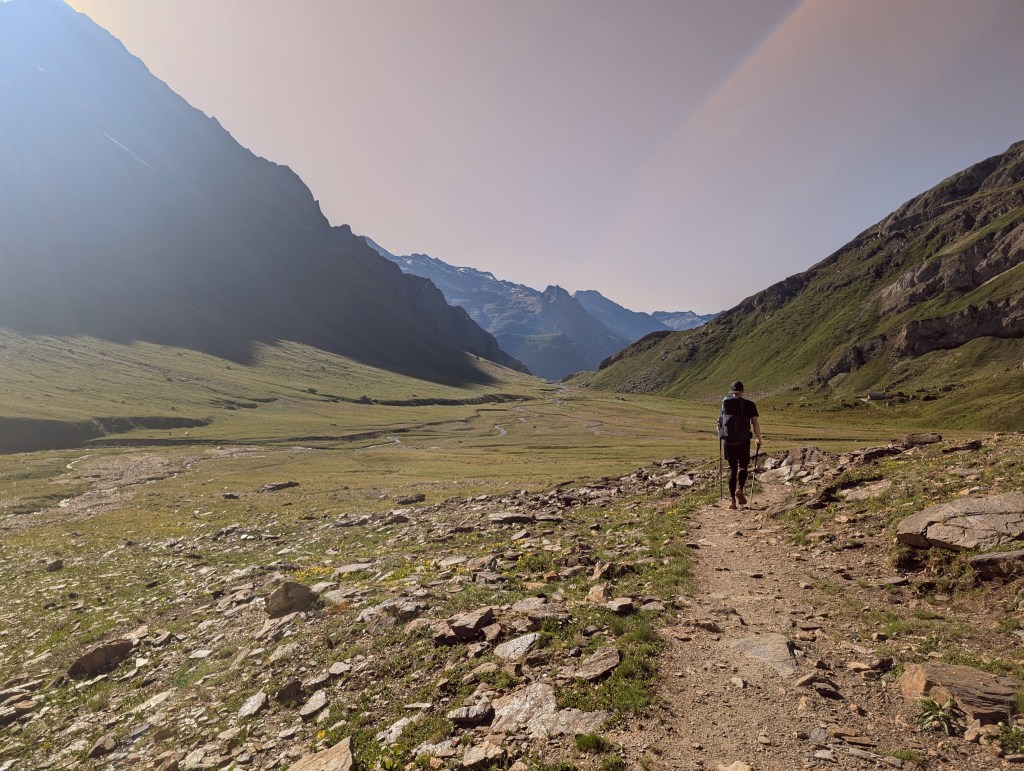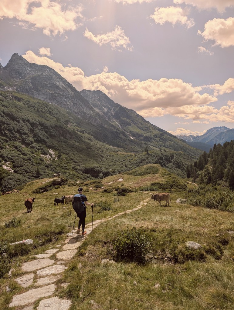 Die ersten Meter legten wir noch relativ flach am Lago Vannino entlang zurück. Auch dieser Start war herrlich im Hinblick auf die Landschaft und die Aussicht. Unsere Körper waren aber zu diesem Zeitpunkt schon nicht mehr ganz so frisch – immerhin hatten sie weitere 17 Kilometer und zahlreiche Höhenmeter verdauen müssen.