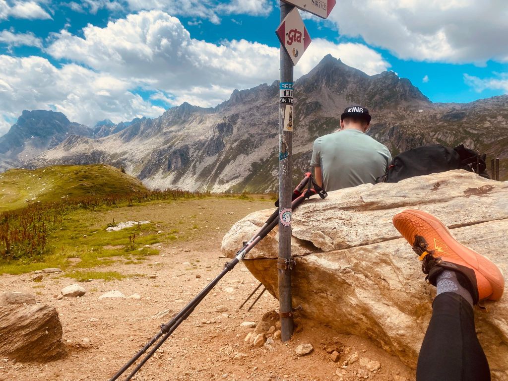Aber oben auf dem Pass angekommen, hatte Fourchi nach dem Ablegen des Rucksacks auch noch die Gelegenheit, ein Foto von Haude zu schiessen. Schliesslich hat auch er ein wenig gelitten.