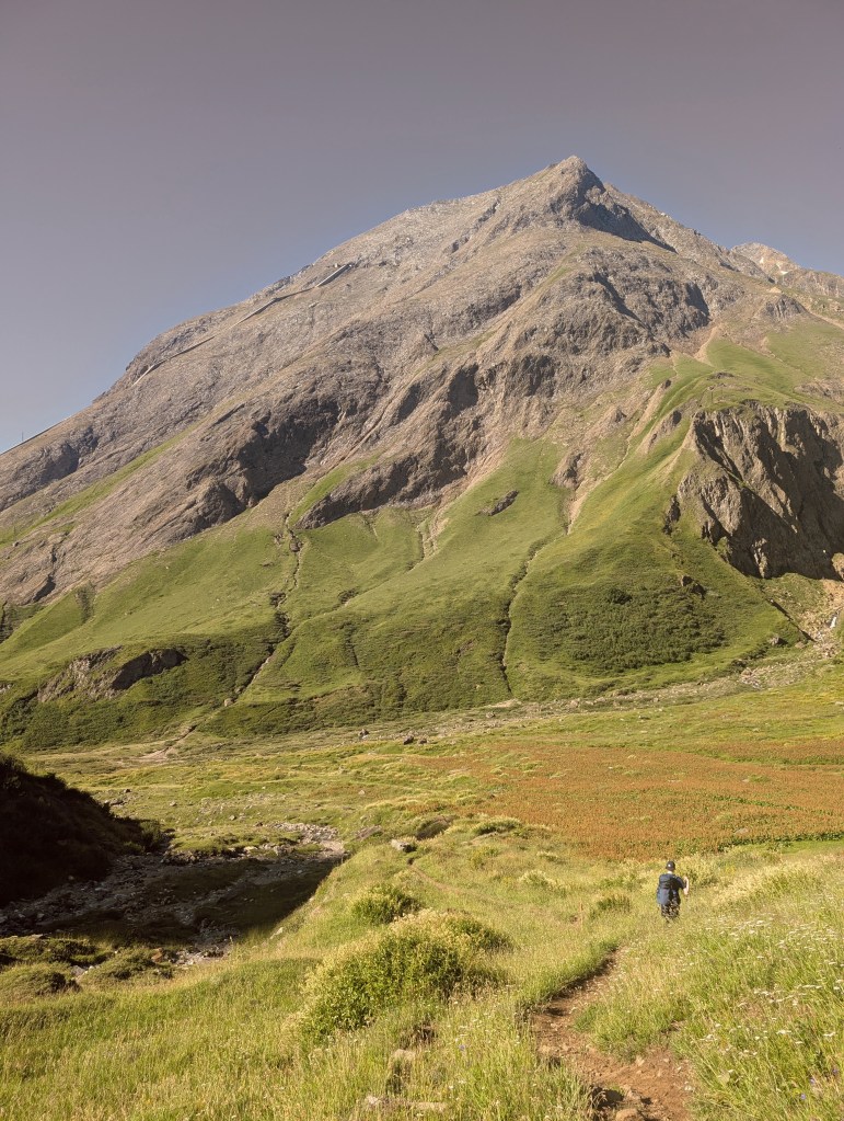 Es folgte ein erster relativ steiler und langer Abstieg hinunter auf eine Ebene – das wird nicht unser letzter am heutigen Tag sein, wo wir fast 3000 Höhenmeter absteigen mussten. Man merkte uns eine gewisse Vorsicht an und es war auch zu erkennen, dass wir beide nicht wirklich schmerzfrei unterwegs waren. Insbesondere beim Abwärtswandern machten sich diese Beschwerden jeweils am deutlichsten bemerkbar.
