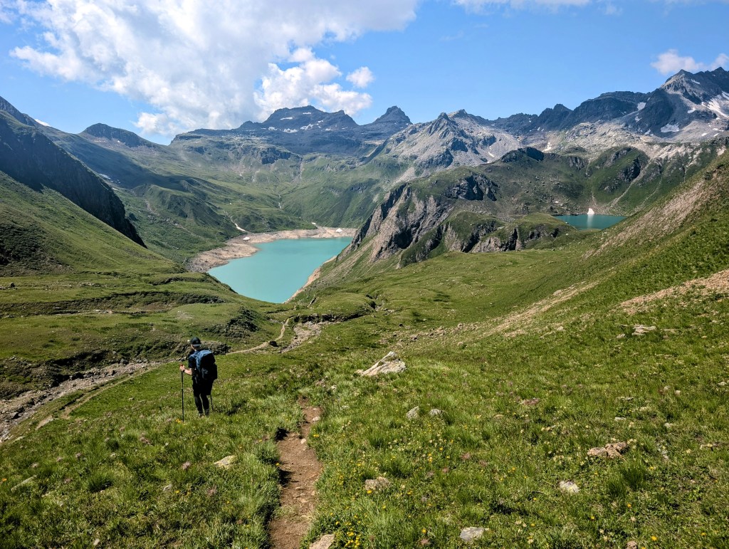Im Hintergrund ist auch schon der nächste See erkennbar, dazu kommen wir dann auch gleich. Aber bis dahin gab es noch einen langen Weg zurückzulegen, denn der Abstieg war auch ein paar Kilometer lang. Zudem musste anschliessend in der Ebene angekommen auch eine Passage von zwei Kilometern relativ flach zurückgelegt werden. Auch heute wurden wir wieder mit atemberaubenden Ausblicken für unsere Strapazen belohnt. Ihr kriegt es hier in Form einer Galerie vermutlich mit etwas weniger Strapazen, aber sind halt auch nur Bilder.
